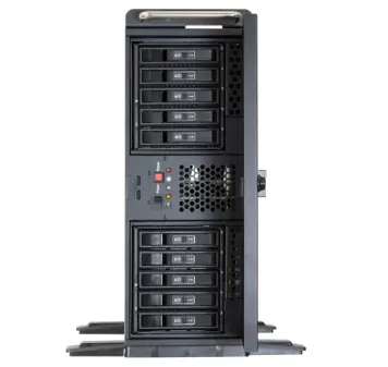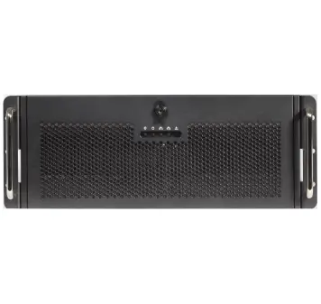 Модель выполнена в корпусе 4U и поддерживает возможность установки как в вертикальном положении, так и в стандартную 19-дюймовую серверную стойку.